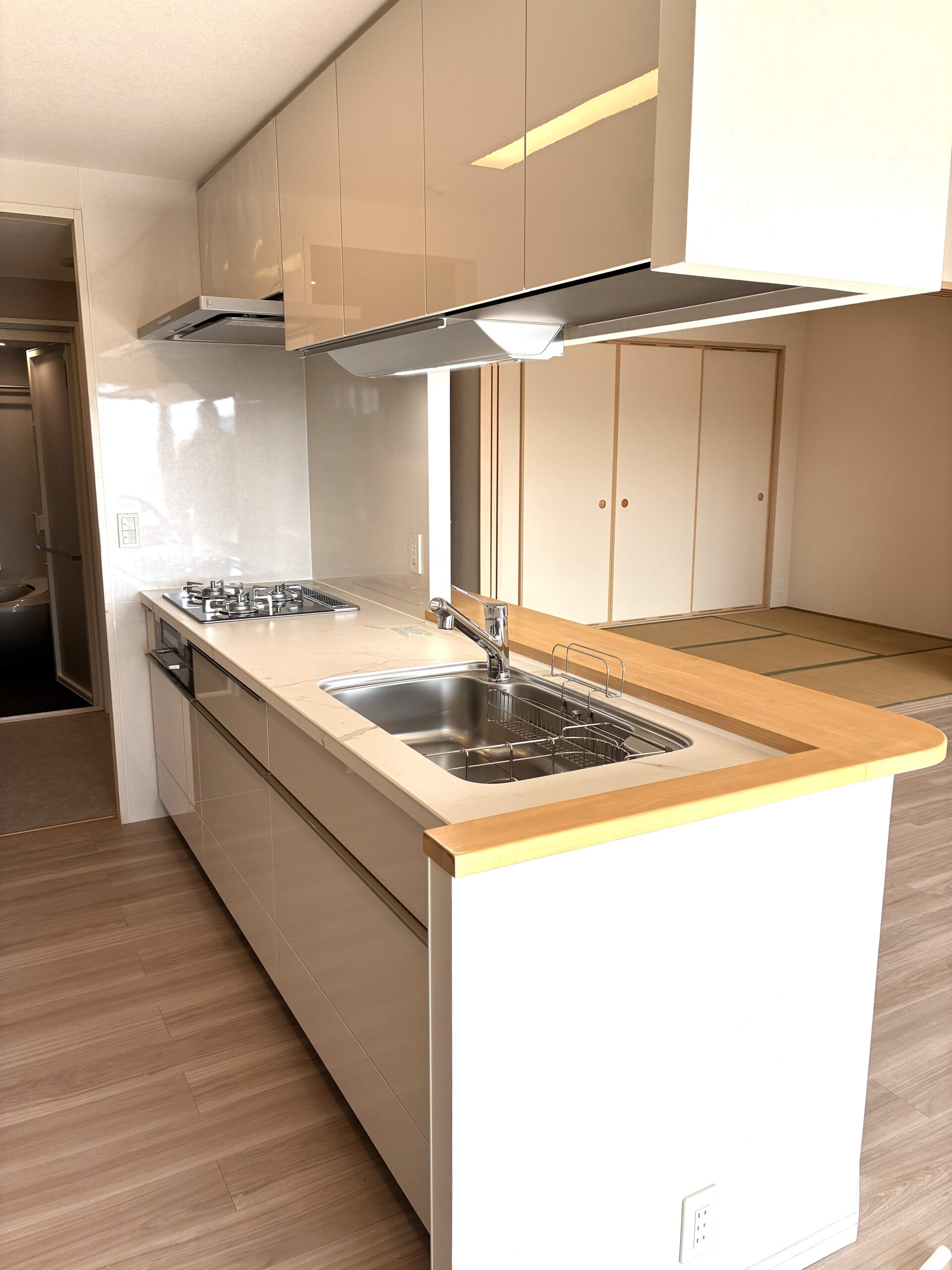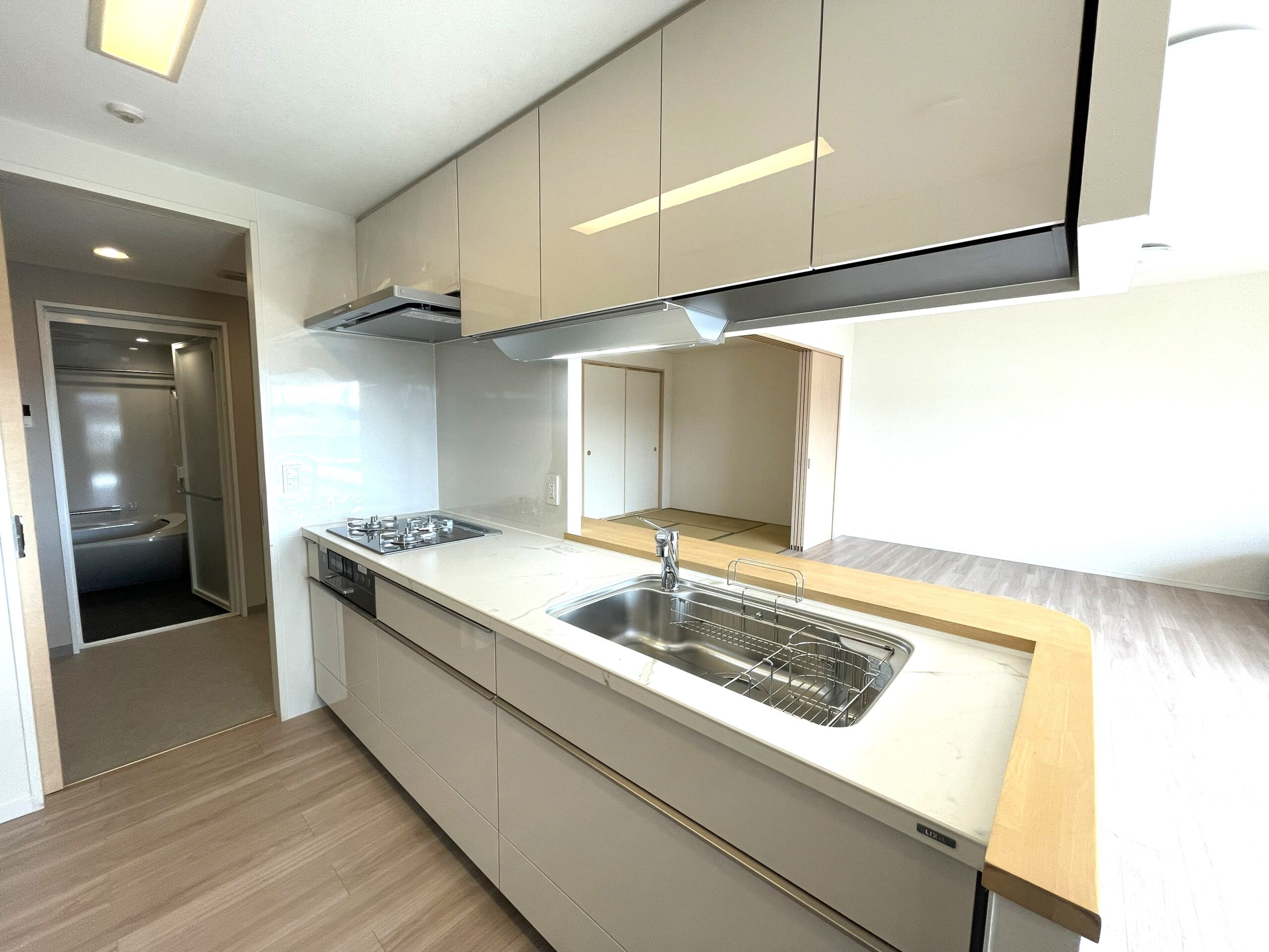 ご両親がお住まいだったマンションを、息子さんご夫婦が引き継いでお住まいになるこの機会にリフォームを行いました。 キッチン・浴室・洗面・トイレなどの水廻り設備を一新し、あわせて床材とクロスも貼り替えることで、住まい全体を明るく清潔感のある空間へ。 これまでの思い出を大切にしながら、息子様ご夫婦とお母さまの暮らしに合った快適な住まいへ生まれ変わりました。